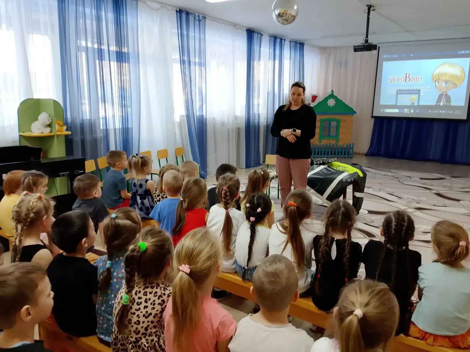 В образовательных учреждениях проводились открытые уроки с детьми, а в детских садах детям доводили информацию в игровой форме, с проведением занимательных викторин и мастер-классов, такая форма обучения позволяет детям максимально быстро усвоить теоретические знания и на практике попробовать отработать действия при возникновении условного пожара.