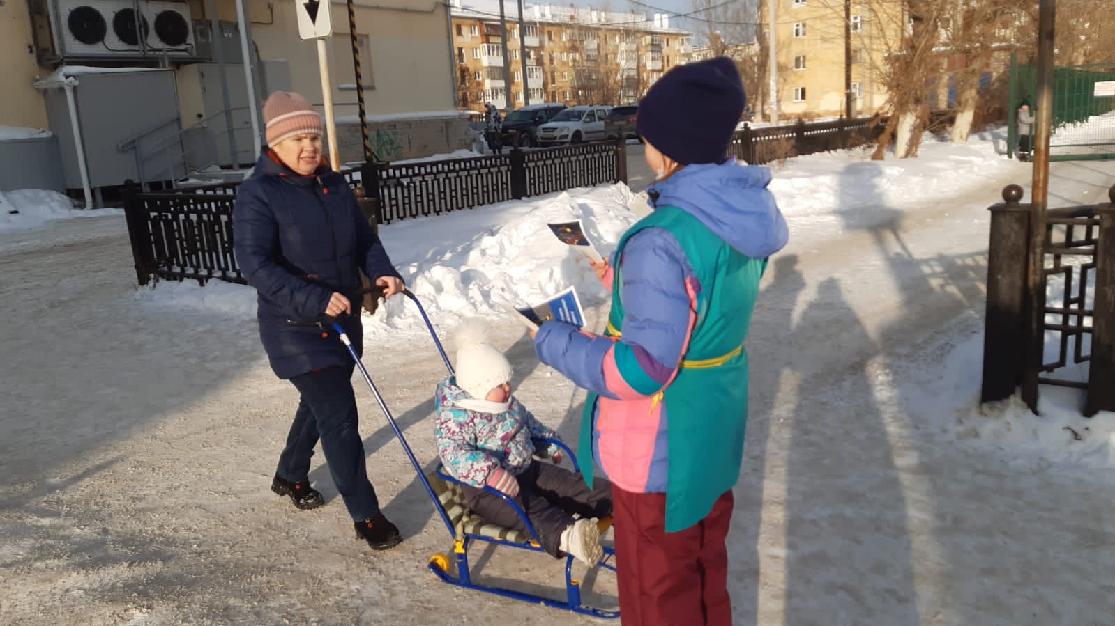 Встречая юных пешеходов, рассказывали о подстерегающих их опасностях в зимний период, одной из которых является самостоятельно сформированные снежные горки, по которым дети скатываются на проезжую часть дороги или находятся в непосредственной близости от нее.