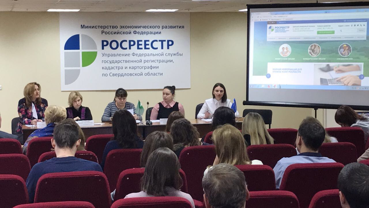 14 декабря 2017 года сотрудники Управления Росреестра и Кадастровой палаты по Свердловской области провели рабочую встречу с застройщиками и кадастровыми инженерами Урала. В рамках рабочей встречи были рассмотрены следующие вопросы: особенности реализации положений Федерального закона от 13.07.2015 № 218-ФЗ «О государственной регистрации недвижимости» на территории Свердловской области; рекомендации по подготовке документов для ввода в эксплуатацию объектов недвижимости; «Личный кабинет кадастрового инженера»; электронные услуги Росреестра.