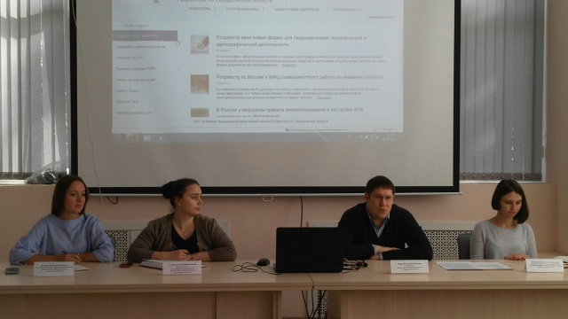 В конце встречи специалисты кадастровой палаты провели мастер-класс по электронным услугам Росреестра. Рассказали и наглядно показали: как можно оформить запрос на предоставление сведений, содержащихся в Едином государственном реестре недвижимости (ЕГРН) и как поставить объект на государственный кадастровый учет (ГКУ).