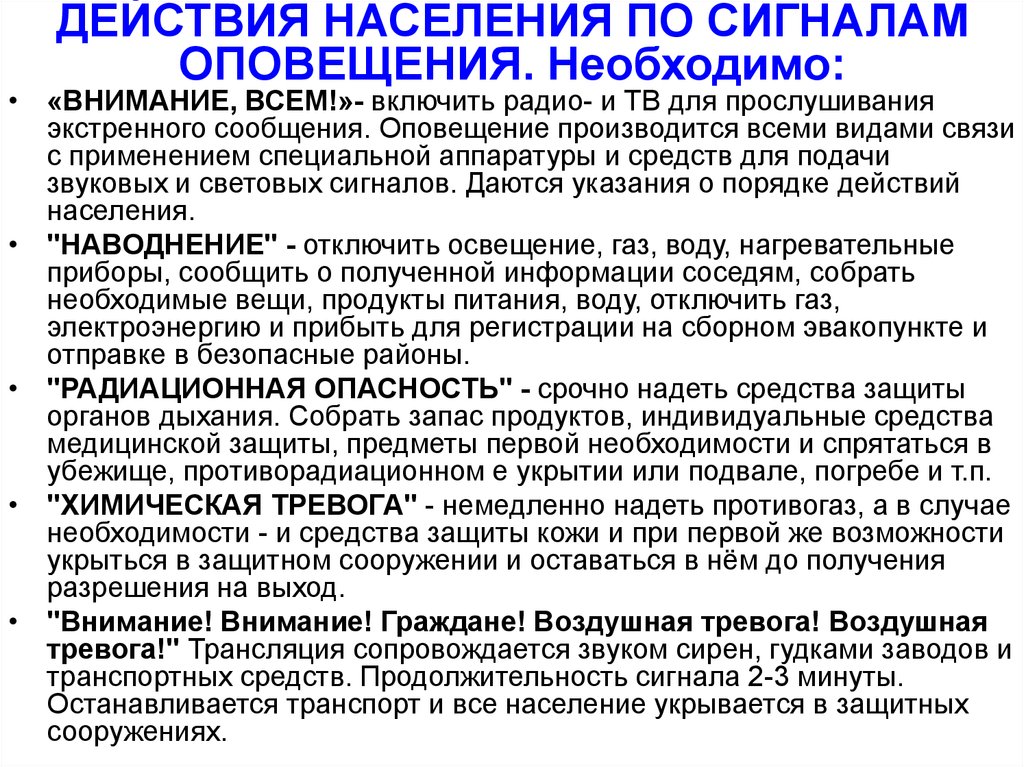 Памятка – Порядок действий населения по сигналу гражданской обороны при нахождении дома